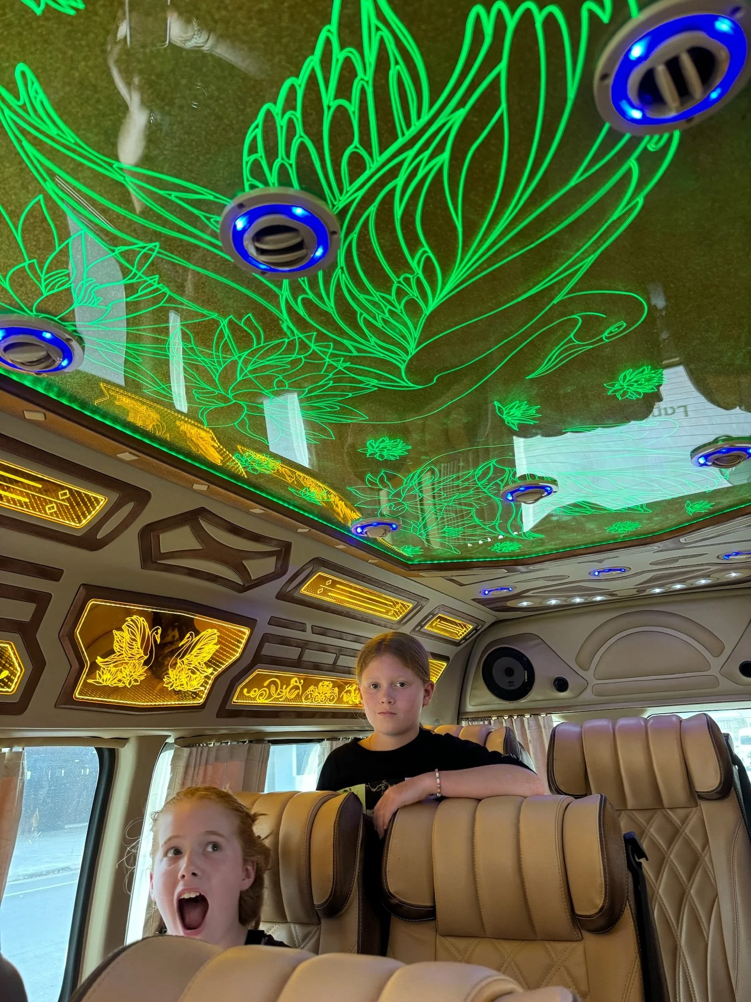 Our driver spoke no english but nevertheless he could tell we were quite impressed with the interior of his van.