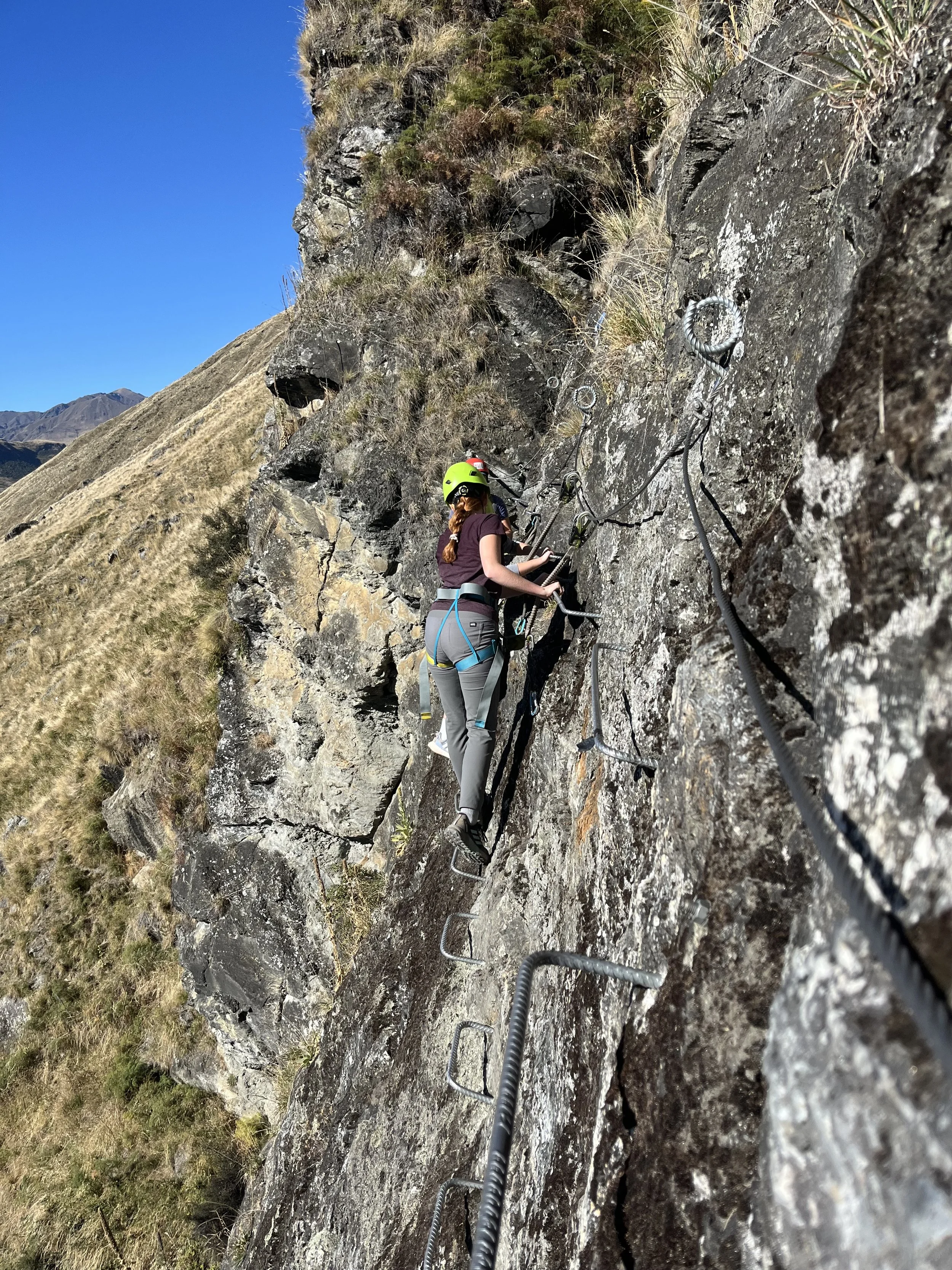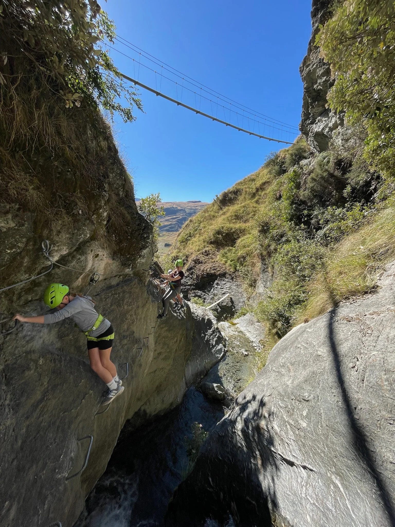 The group was just me, Poppy, and Dad. There was also a man named Pat who was from Ireland with us, and our guide, Dolce. We started climbing, and ended up having a bit of a canyon in one of the flatter sections of the waterfall. Every time we went up a level, there was a little pool. The first area had a vertical “wall walk,” where we had to side step with our backs exposed, but as we went, there were more and more diagonal and vertical climbs.